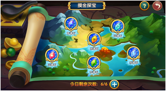 摸金探宝玩法是获得神兵玉石制作和进化材料的重要途径,每个关卡掉落不同的神兵玉石材料。