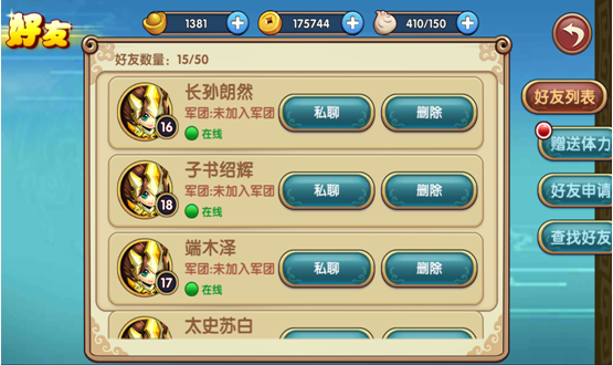 在纯三国手游中,玩家可以通过好友功能和游戏里的朋友进行交互。