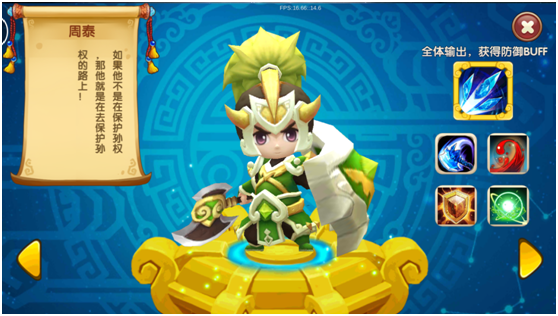 玄冰神盾:周泰大幅提升自身物理防御和法术防御35%+150点,持续12秒。