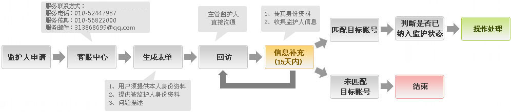 如果您已经申请家长监护服务,您可以通过输入服务号码进行进度查询,了解您所提交的服务申请最新处理进展,如:传真是否收到,是否需要后续提交信息,账号是否已经进行处理等。服务期间,如果您对需要提交的信息或者处理结果有疑问,或者其他任何问题,您均可以随时联系我们,我们将由专门负责的客服主管为您提供咨询解答服务,或者配合、指导您解决问题。进入